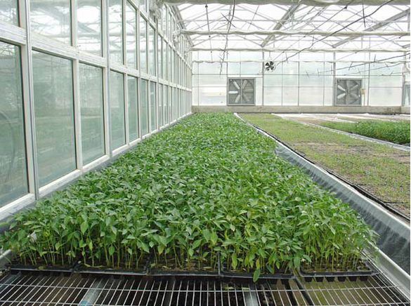 大棚內氣溫日變化趨勢與露地相同,但晝夜溫差變幅大。白天光照充足,如果薄膜密閉棚內溫度升高很快,較高可達40—50℃,比棚外高20℃以上。陰雨天,增溫效果差,夜間棚內較低氣溫一般比棚外高1—3℃。棚內地溫比氣溫穩定,通常為10—20℃。棚內氣溫也因位置不同而異,大棚橫向分布為中間高、兩邊低,因此大棚中部的植株往往比兩邊的植株高大。大棚縱向分布,白天有太陽(yáng)照射時(shí),溫度為頂部高、下部低,夜間、陰天則相反。